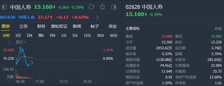 智通财经APP获悉,瑞信发布报告称,将中国人寿(02628)今年盈利预测下调1%-2%,目标价由28港元下调3.57%至27港元,维持“跑赢大市”。