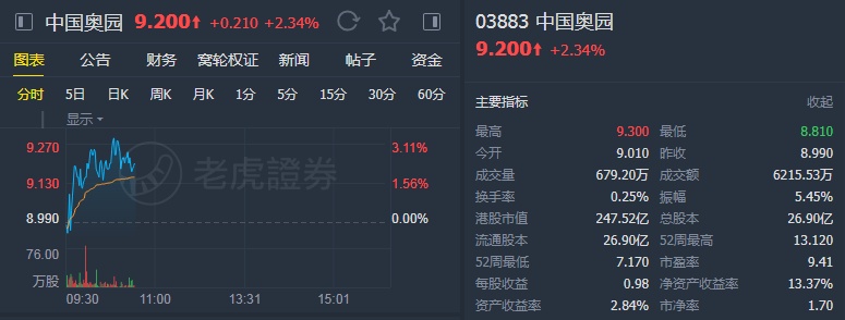 智通财经APP获悉,瑞信发布报告称,上调中国奥园(03883)目标价,由11.4港元升至11.6港元,评级由“中性”提升至“跑赢大市”。