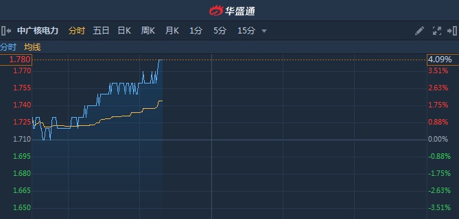 智通财经APP获悉,中广核电力(01816)昨日发布年度业绩,归母净利润同比增8.8%至94.66亿元,每股派0.076元,截至11时18分,涨4.09%,报价1.78港元,成交额2187万。