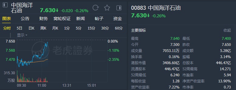 该行称,下调对中海油股份评级,由“买入”降至“中性”,目标价由9.3港元下调至8.1港元。