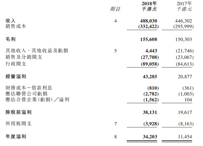 2018财年,该公司收入同比增加9.3%至4.88亿港元,毛利增加3.5%至1.556亿港元,利润增加134.1%至3094.3万港元。到2019年,该公司收入增加2.9%至5.02亿港元,利润减少62.8%至1150万港元(2018年:3090万港元)。不过,若不计入投资及商誉减值,2019年基础盈利为2110万港元。