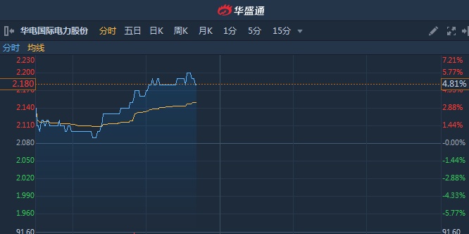 智通财经APP获悉,华电国际电力(01071)年度归属公司权益持有人利润激增134.16%至33.85亿元,股价延续涨势,收复20日均线,截至11时41分,涨4.81%,报价2.18港元,成交额1858万。