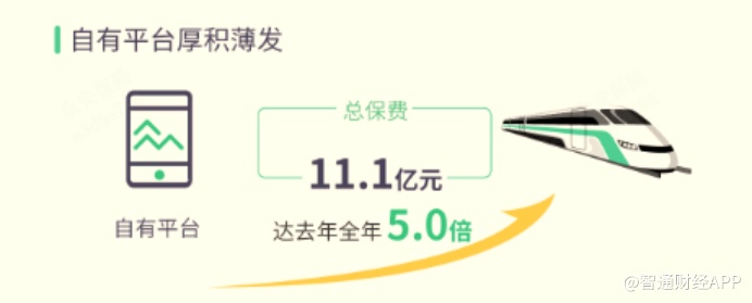 2019年财报最亮眼的地方之一,是众安的自有平台业务突飞猛进。去年,众安战略性拓展其自有平台(包括APP、小程序、手机官网等),通过原创的传播内容,在新场景中持续进行市场教育,吸引用户在自有平台实现销售转化。经过一系列的建设和投入,自有平台总保费突破10亿元,达到2018年的5倍,对公司总保费贡献也提升至7.6%,已成为众安业务的重要支柱。