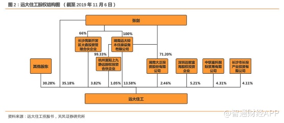 2019年11月,长沙远大住宅工业集团股份有限公司在香港联交所主板上市,获得的全球发售所得款项净额约为11.84亿港元。远大住工(02163)主营业务包括PC构件制造业务、PC生产设备制造业务及施工总承包业务等,是装配式建筑行业龙头。公司股权结构较为集中,董事长及实际控制人张剑先生直接持有公司股权35.18%,间接持有股权20.91%。