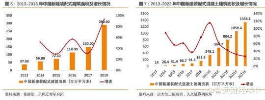 自2017年住建部于《“十三五”装配式及建筑行动方案》提出:到2020年全国装配式建筑占新建建筑比例达到15%以上,其中重点推进地区达到20%以上,积极推进地区达到15%以上,鼓励推进地区达到10%以上后,我国装配式建筑行业发展如火如荼,新建装配式建筑面积高速增长,2018年增速更是达到了93.3%。