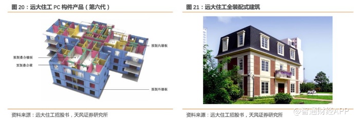 远大住工逐步减少施工总承包业务,并将业务重心转移到PC构件及生产设备制造业务的决定既是受到了装配式建筑行业广阔前景的推动,也是由于民营企业从事施工总承包业务局限性。一般来说,总承包业务需要垫资,而远大住工作为民营企业的一员,现金流无法支撑企业与中国建筑等国企、央企竞争总承包商资格,总承包业务毛利率有所下降。然而由于过去多年来,公司通过总承包在装配式市场积累了一定声誉,同时PC构件市场正处于快速发展态势,市场空间大而利益冲突小,更容易率先抢占市场份额,因而拓展PC构件及生产设备制造等新兴业务成为公司战略的最优选择。下图为远大住工新一代的PC构件产品以及利用预制构件完成建造的全装配式建筑。