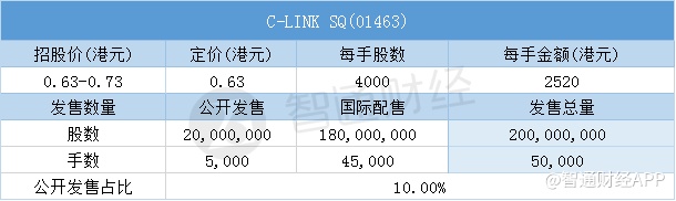SQ(01463)配售结束。配售招股价0.63-0.73港元,最终定价0.63港元,每手2520港元。