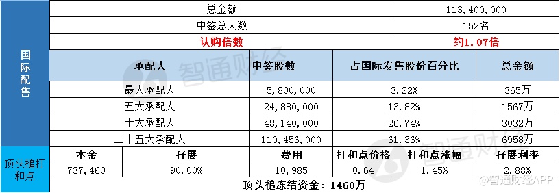 国际配售申购人数未披露,认购倍数约1.07倍。