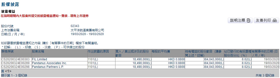 智通财经APP获悉,联交所最新资料显示,3月19日,FIL Limited增持太平洋航运(02343)