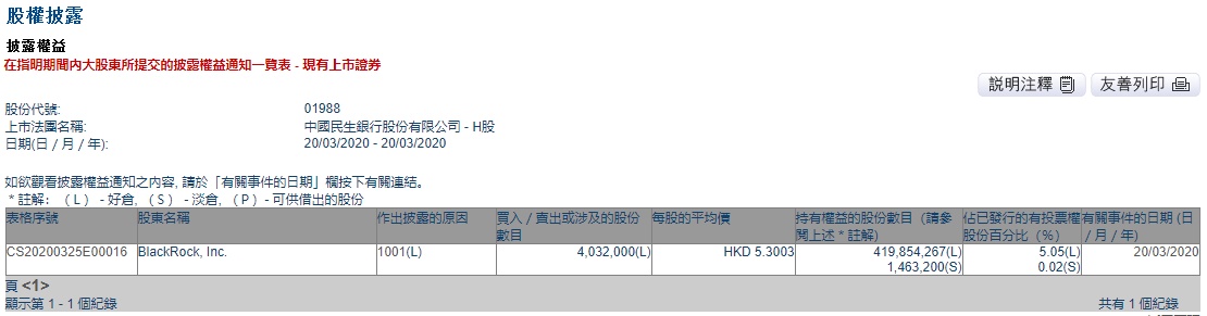 智通财经APP获悉,联交所最新资料显示,3月20日,贝莱德增持民生银行(01988)