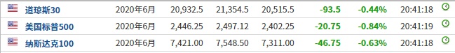 科技股方面,苹果(AAPL.US)盘前跌1.05%,亚马逊(AMZN.US)盘前涨0.38%,谷歌(GOOG.US)盘前跌0.86%,Facebook(FB.US)盘前跌1.35%,奈飞(NFLX.US)盘前跌0.62%。