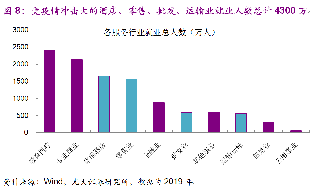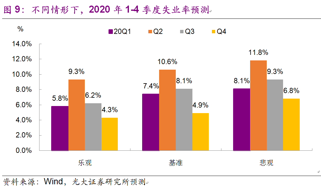 因此,我们认为对失业人数大幅上升无需过度担忧。在财政救助的保障下,他们的生活可能不会受到太大影响。一旦公共卫生事件好转,他们也可能很快返岗,届时失业人数或将迅速下降。