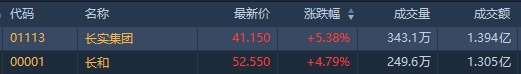 智通财经APP获悉,根据港交所权益披露,李嘉诚李泽钜近日合计增持长实集团(01113)1660.15万股,涉资约6亿港元。长和(00001)则获增持合计85万股,涉资约4030万元。截至发稿,长实集团涨5.25%,报41.1港元;长和涨4.69%,报52.5港元。