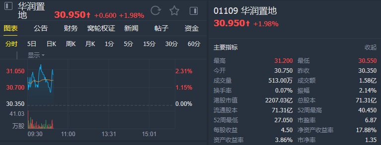 智通财经APP获悉,大和发布报告称,下调华润置地(01109)目标价3.2%,由44.2港元调低至42.8港元,维持“买入”评级。