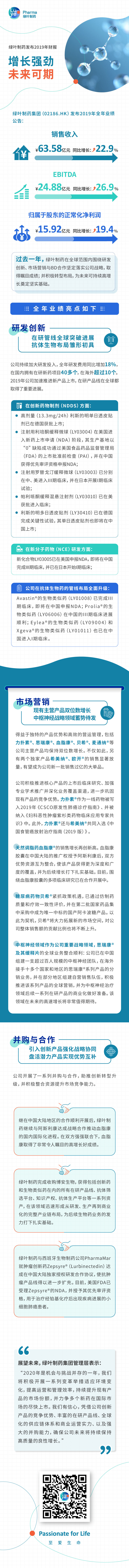 绿叶制药(02186)公告,截至2019年12月31日止年度,收入较截至2018年12月31日止年度增加22.9%至人民币63.58亿元。股东应占溢利较截至2018年12月31日止年度增加12.7%至人民币14.69亿元。每股盈利为人民币45.84分,而截至2018年12月31日止年度则为人民币40.62分。末期股息每股人民币0.054元。