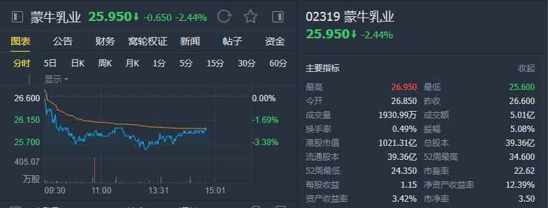 智通财经APP获悉,大和发布报告称,将蒙牛乳业(02319)目标价由32.6港元下调2.45%至31.8港元,维持“买入”评级。