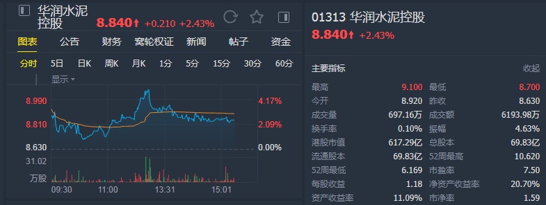 智通财经APP获悉,小摩发布报告称,华润水泥控股(01313)去年纯利86亿元,分别高于该行及市场预期8%及6%,主要是受到华南地区水泥价格创历史新高以及合营公司盈利复苏所带动。该公司维持高派息比率达48%,也就是全年股息收益率为6.5%。该行表示将华润水泥视为行业首选之一,因其华南业务比重大,重申其“增持”评级,目标价为12港元。