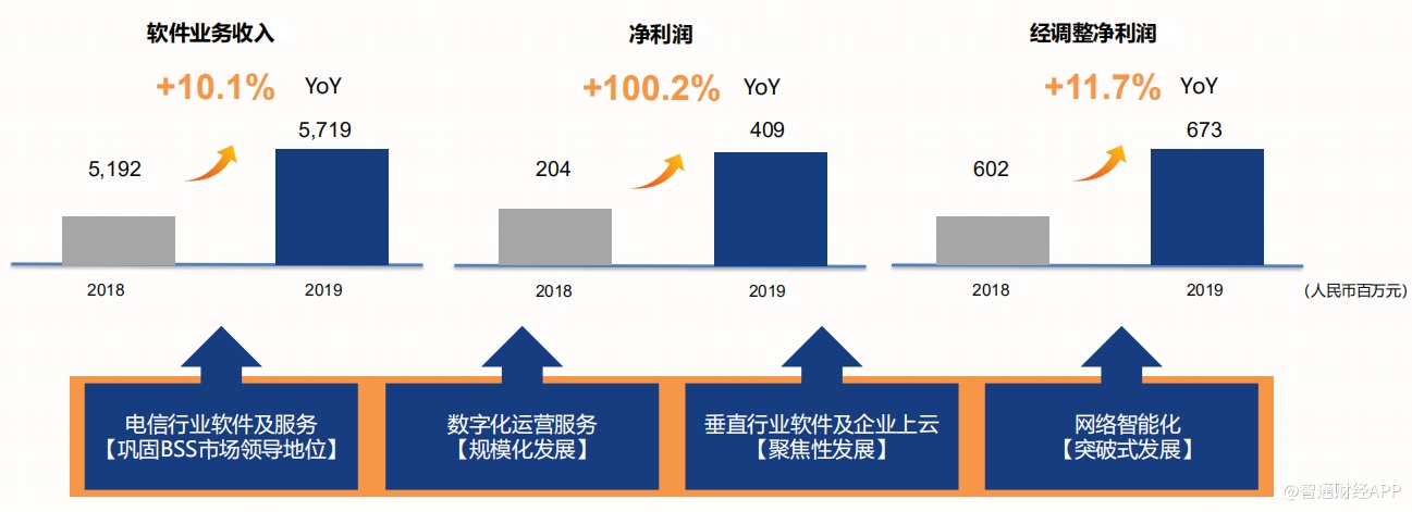 具体来看,亚信科技在2019年底确立的“一巩固、三发展”5年发展战略主要包括,巩固已较为成熟的BSS业务的市场地位;规模发展5G
