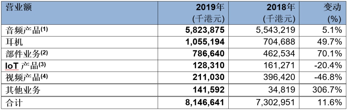 据财报,通力电子营收实现双位数增长,主要得益于公司于2019年大力发展音频产品,智能产品以及部件业务,其中智能音箱、头戴式耳机及声霸等产品。