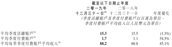 得益于三款游戏推出后的大受欢迎,公司在2019年平均季度活跃账户保持与去年同期基本持平的1530万人的同时,平均季度付费账户则大幅增长54.5%至170万。并且,由于手游产品正转移至更具支付能力和购买意愿的年龄段人群,公司平均每季季度付费账户平均收入也同比大幅增长45.1%至88.2元。