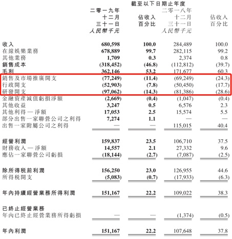 而高毛利率的维持叠加费用率全面优化,则进一步推升百奥主营业务利润率水平。智通财经APP了解到,新手游产品贡献收入占比后,公司依然录得53.2%的高毛利率水平,毛利总额实现同比增长110.9%至3.62亿元。与此同时,公司销售及市场推广开支、行政开支仅分别小幅增长11.6%、4.8%至7724.9万元和5290.3万元,营收占比从去年同期的24.3%、17.7%大幅降至11.4%和7.8%;注重后续研发的百奥,成本占比最高的研发投入实现同比增长19.3%至9706.2万元,但依旧小于营收增长,使得公司实现了近1.6亿元的经营利润。