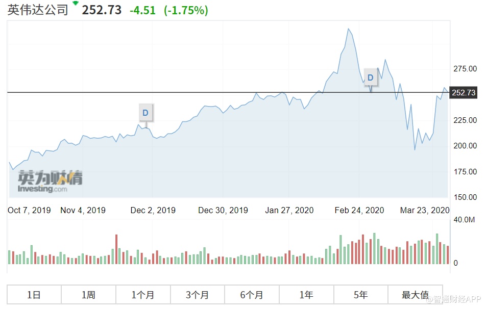 在上一个报告的季度中,英伟达来自游戏业务的销售额占收入的48%,同比增长56%。随着视频游戏成为主要娱乐形式之一,游戏显卡可能会在未来几个季度继续推助销售额。英伟达今日的收盘价为252.73美元,较近期高点下跌约21%。