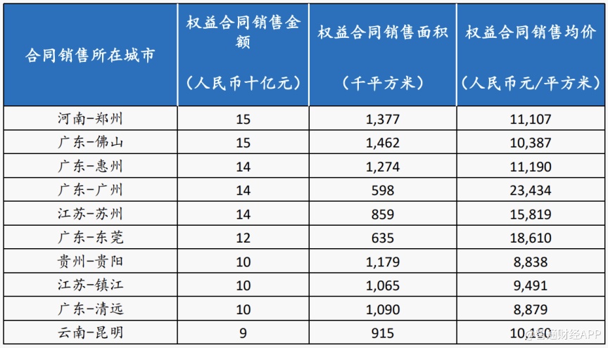 (碧桂园2019年权益合同销售Top10城市,数据来源:企业公告)