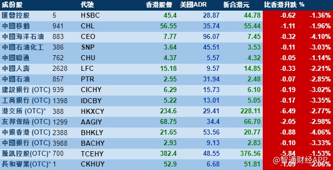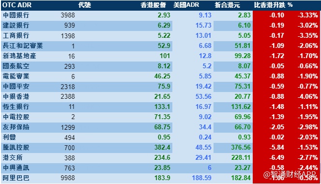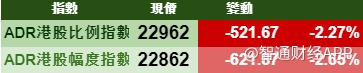 智通财经APP获悉,美股三大指数挫3%至4%,港股ADR指数显着下跌,按比例计算,收报22,962点,跌521.67点或2.27%。