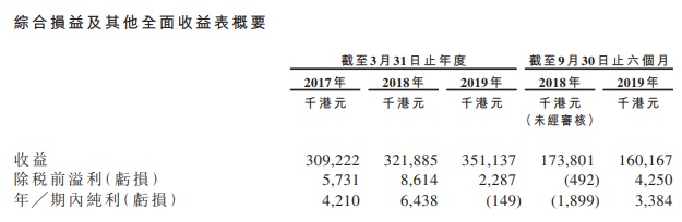 截至2019年9月30日止六个月,该企业的纯利约为338万港元,而截至2018年9月30日止六个月则为净亏损约190万港元。