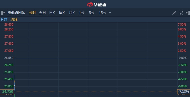 智通财经APP获悉,维他奶国际(00345)于上周五(3月27日)盘后发盈警,年度公司股权持有人应占溢利预计将大幅减少约25%至35%。早盘股价跳空低开,截至9时32分,跌7.13%,报价24.75港元,成交额1367万。