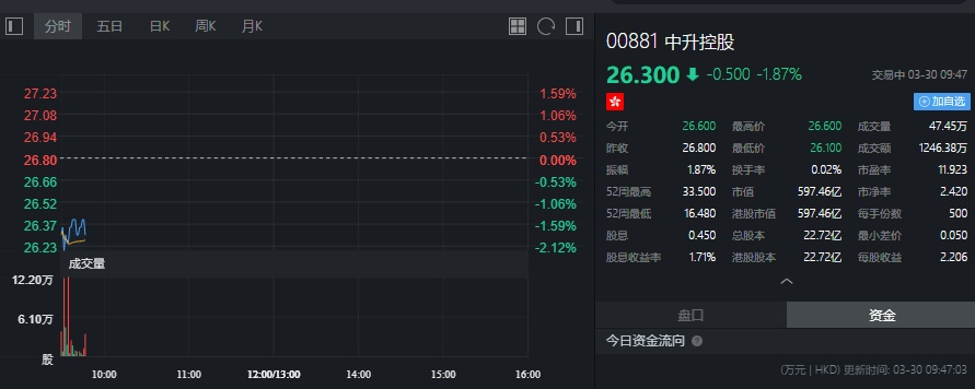截至今发稿,中升控股跌1.87%,报26.3港元。
