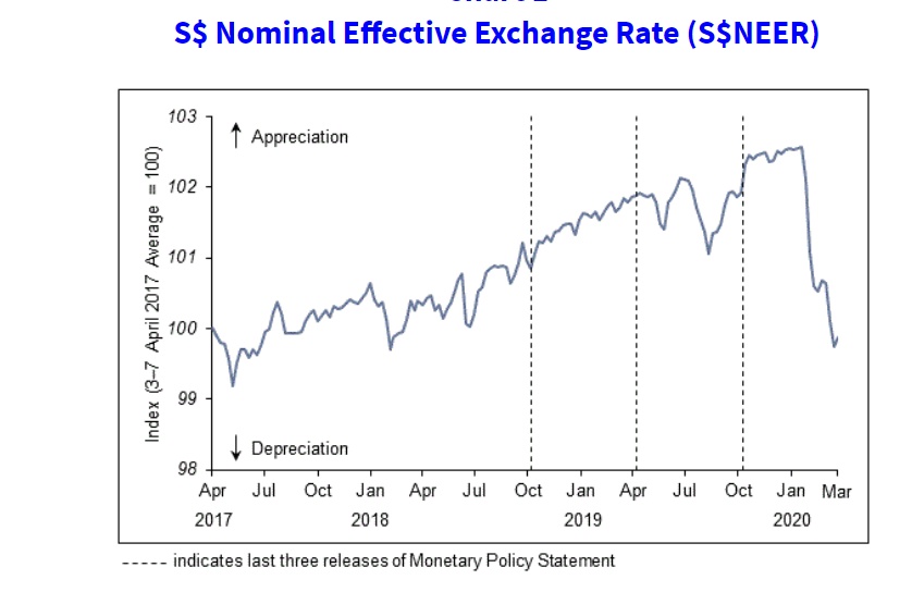 新加坡金管局还会根据新加坡经济增长和通胀面临的评估风险,在调整新元升值或贬值的速度时,改变这一区间的斜率、宽度和中点,通常在4月和10月的两次预定政策会议上宣布这些变化。