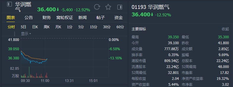 该行称,华润燃气去年核心盈利同比升9%至49亿人民币,略低于该行原预期50亿元人民币,公司管理层对今年营运目标指引非常疲弱,其去年派息比率仅38%。该行估计华润燃气今年每股盈利将同比持平,其华润燃气目前估值相当预测今年市盈率18倍。