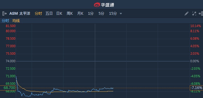智通财经APP获悉,ASM太平洋(00522)近期港股通持股比例大幅回落,拖累股价阴跌不止。截至13时35分,跌7.16%,报价68.7港元,成交额1.13亿。