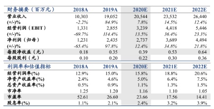 维持“增持”评级,维持目标价13.77元/股,对应2020年P/B1.72倍。公司2019年营收/归母净利润为190.5亿/24.4亿元,同比+85%/+98%,ROE 4.61%,同比+2.2pct,低于我们预期,主要受减值计提增加影响。投资收益同比大增557%,是公司盈利高增的主要驱动;资管/经纪/投行/利息净收入分别同比-24%/+14%/-8%/+2%。公司金融资产持续扩张,股票和债券配置均衡,后续投资和资管业务收入持续增长可期,减值计提充足为后续业绩释放奠定基础。考虑疫情对2020年权益市场扰动,我们调整公司2020-22年EPS至0.39/0.53/0.64元(调前20-21年0.44/0.52元),增持。