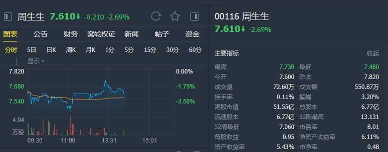 该行相信,金价今年来上升8%能支持黄金产品的毛利率扩张,而公司也一直积极与业主商谈减租,3至4月份的平均租金下降约22%-23%,相信公司2020财年的毛利率将为27.2%。该行表示,将公司的目标价由10港元下调至8.1港元,维持“中性”评级。