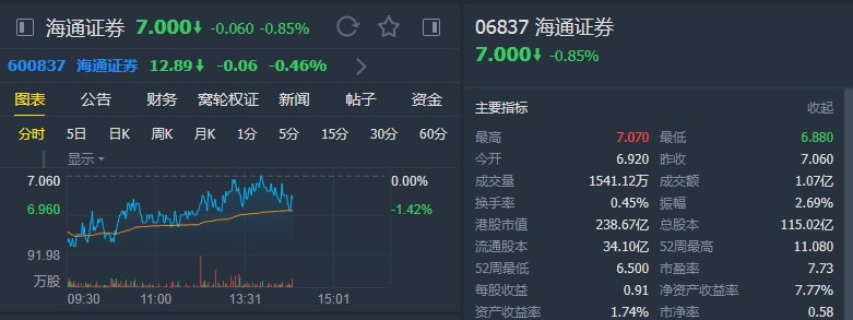 该行下调对海通证券股份目标价,由11.7港元降至10.7港元,评级维持“买入”。该行表示,海通证券估值相当于今年预测市账率0.6倍,低于行业平均,随着海通国际(00665)及海通银行的收入贡献增长,预期集团将继续努力建立其海外平台。