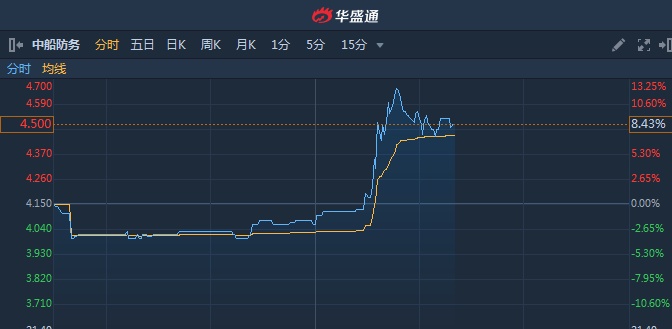 智通财经APP获悉,中船防务(00317)年度业绩扭亏为盈,股东应占净利润5.48亿元,午后股价直线拉涨,截至14时18分,涨8.43%,报价4.5港元,成交额1068万。