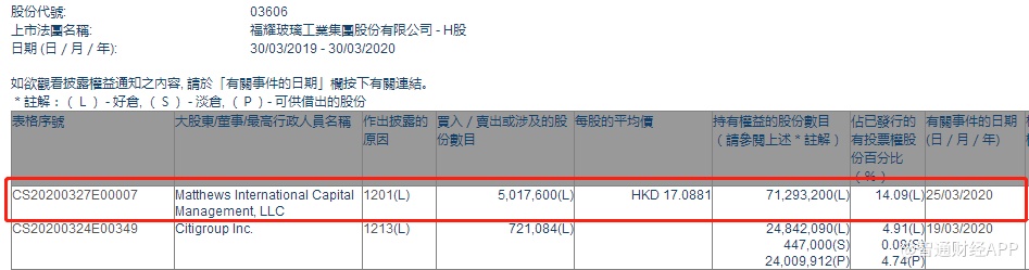 智通财经APP获悉,联交所最新资料显示,3月25日,Matthews International Capital减持福耀玻璃(03606)501.76万股,每股作价17.0881港元,总金额约为8574.13万港元。减持后最新持股数目为7129.32万股,最新持股比例为14.09%。