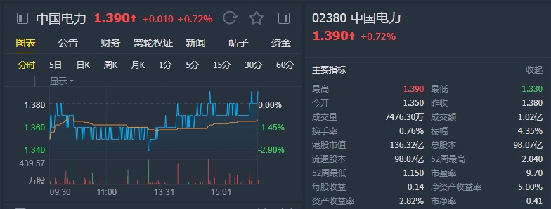 智通财经APP获悉,花旗发布报告称,维持中国电力(02380)“买入”评级,目标价由2.18港元降至2港元,认为目前估值吸引,单位燃料成本下降也有助抵销使用率下降,预期于年底可再生能源的使用量占比可升至50%,为内地独立发电商中最高。但该行调降今明年纯利预期3%-8%以反映燃煤发电利用率下降。
