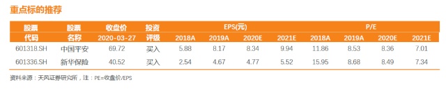 截至3月27日,中国平安、中国人寿、中国太保、新华保险2020年PEV分别为0.90、0.70、0.57、0.54倍,当前估值已充分反映长端利率下行预期和保费端承压的预期。目前保险股股价隐含的“长期投资收益率假设”极低,平安A股为4.0%(未考虑平安科技、管理等各种溢价),国寿A股为3.4%,新华、太保A股低于2.5%;新华H、国寿H、太保H甚至低于2%。我们基于最悲观情景(10年期国债收益率2%、长期投资收益率预期3.5%)测算EV的调整值,调整后平安,新华,国寿,太保的EV折价率分别为-14%、-24%、-29%、-23%,P/“调整后的最悲观2020EV”分别为1.05倍、0.71倍、0.98倍、0.74倍,调整后的PEV估值水平依然处于相对低位。4月中下旬开始保费有望迎来改善,投资端亦有利好因素,我们判断保险股的转机将较快出现。