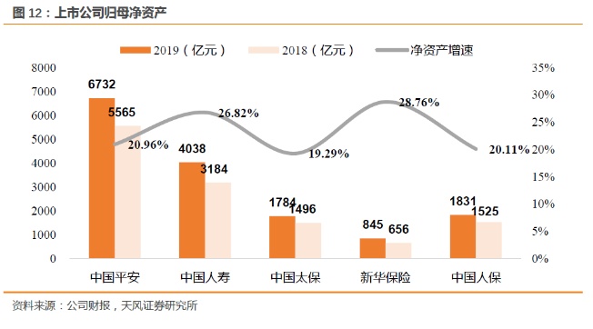1.5. 平安、国寿、太保、新华、人保2019年末净资产分别较年初+21.0%、26.8%、19.3%、28.8%、20.1%
