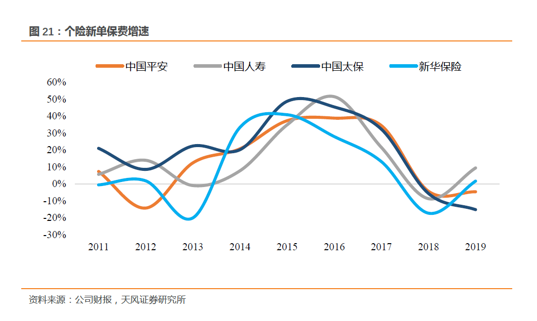 中期来看,行业正进行着新旧动能的转换。保险的本质是“法律合同”+“人性温度”,中长期代理人渠道仍将是创造价值的最重要渠道,但寿险行业进入新旧动能转换的周期,依靠增员拉动的旧动能减弱,而新动能在积攒能量,线下代理人的专业度的重要性在提升(人情销售的模式难以持续且难以扩大客户圈),线上经营提升代理人管理的效率以及客户的触达范围。未来寿险行业新动能包括专业化的代理人队伍、“产品+服务”打造差异化的竞争力、科技赋能、线上+线下的经营模式。平安、太保等公司均在推进新周期下的转型,我们预计转型效果有望在2021年显现,从而拉动公司进入平稳、健康增长的周期。