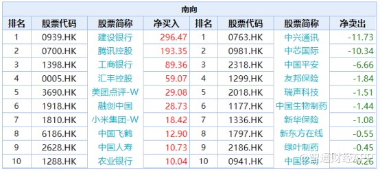 图:最近1个月南向资金净买卖股票列表,银行股、科网股受捧 来源:WIND