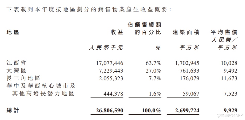 在房地产行业增长放缓的背景下,新力控股的收入和利润增势可谓惊人。据智通财经APP了解,业绩增长主要源于交付房地产的平均售价及总建筑面积增加,经营效益得到有效提升。智通财经APP获悉,2019年,新力控股交付物业建筑面积约269.97万平方米,同比增加约141.1%;交付物业均价为每平方米9929元(除税后),同比增加约32.5%。已确认收入大部分来自江西省,占比约63.7%;其次是大湾区,占27%。