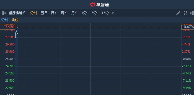 智通财经APP获悉,世茂房地产(00813)昨日(3月30日)盘后披露年报,股东应占利润同比增长23.3%至108.98亿人民币,每股派85港仙,早盘股价大涨,截至9时34分,涨10.08%,报价27.85港元,成交额6350万。