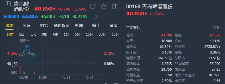 智通财经APP获悉,大和发布报告称,下调青岛啤酒股份(00168)目标价24.6%,由57港元调低至43港元,评级由“跑赢大市”降至“持有”。