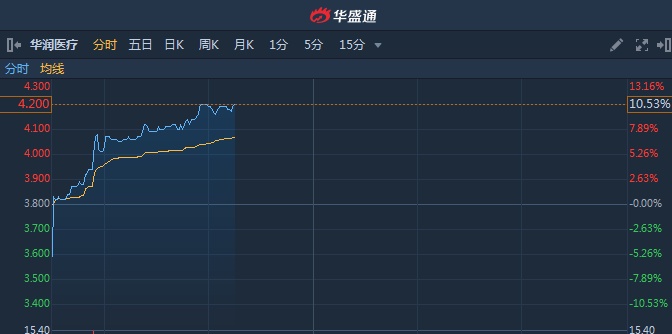截至11时14分,涨10.53%,报价4.2港元,成交额1170万。