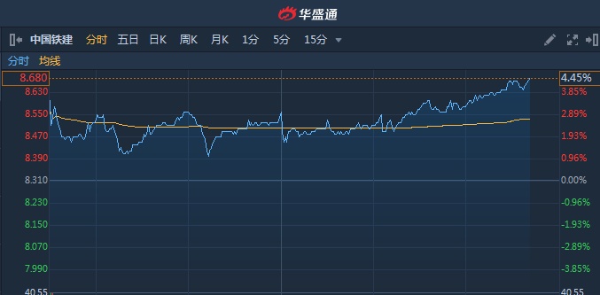 智通财经APP获悉,中国铁建(01186)昨日(3月30日)发布年度业绩,归母净利同比增12.61%至201.97亿人民币,每股派0.21元,该股尾盘涨幅扩大,截至15时40分,涨4.45%,报价8.68港元,成交额1.08亿。
