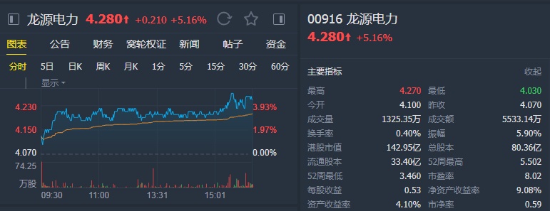 由于更多新增容量,该行上调对龙源电力今明两年盈利预测11%至16%,目标价由4.9港元升至5港元, 维持“买入”评级。